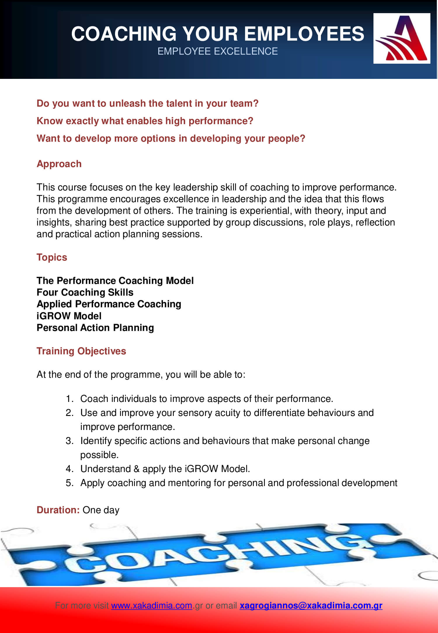 • EMPOWER YOUR EMPLOYEES THROUGH COACHING (1 DAY)